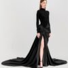Black Kelsey Turtleneck in Spandex & Taffeta Evening Gown