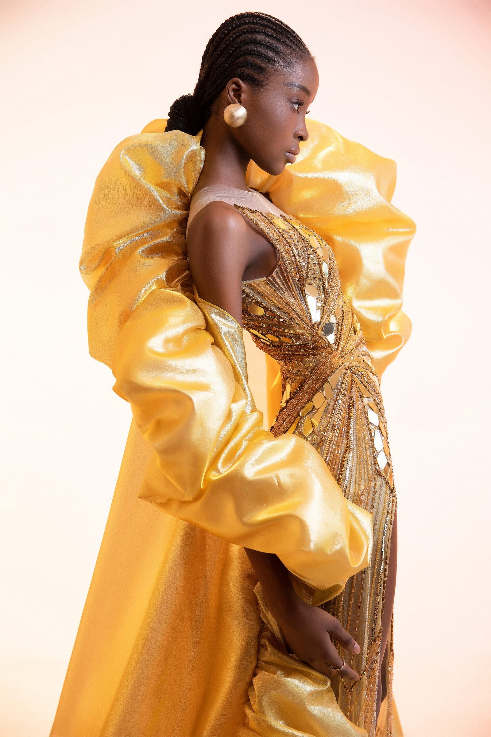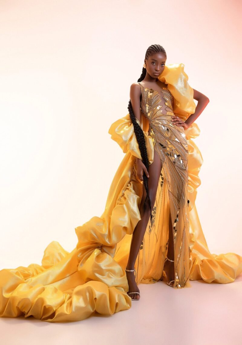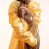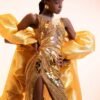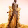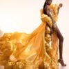 Golden Sheer with Tulle , Sequins and Bead Work Evening Butterfly Gown
