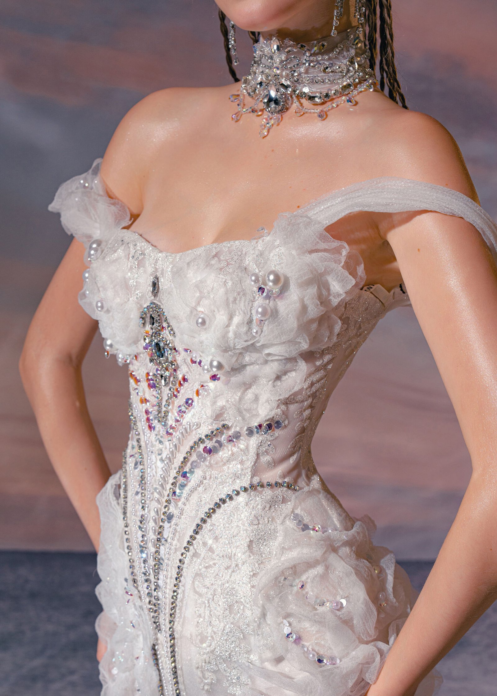 Work: Lace Sequins, Rhinestones beading